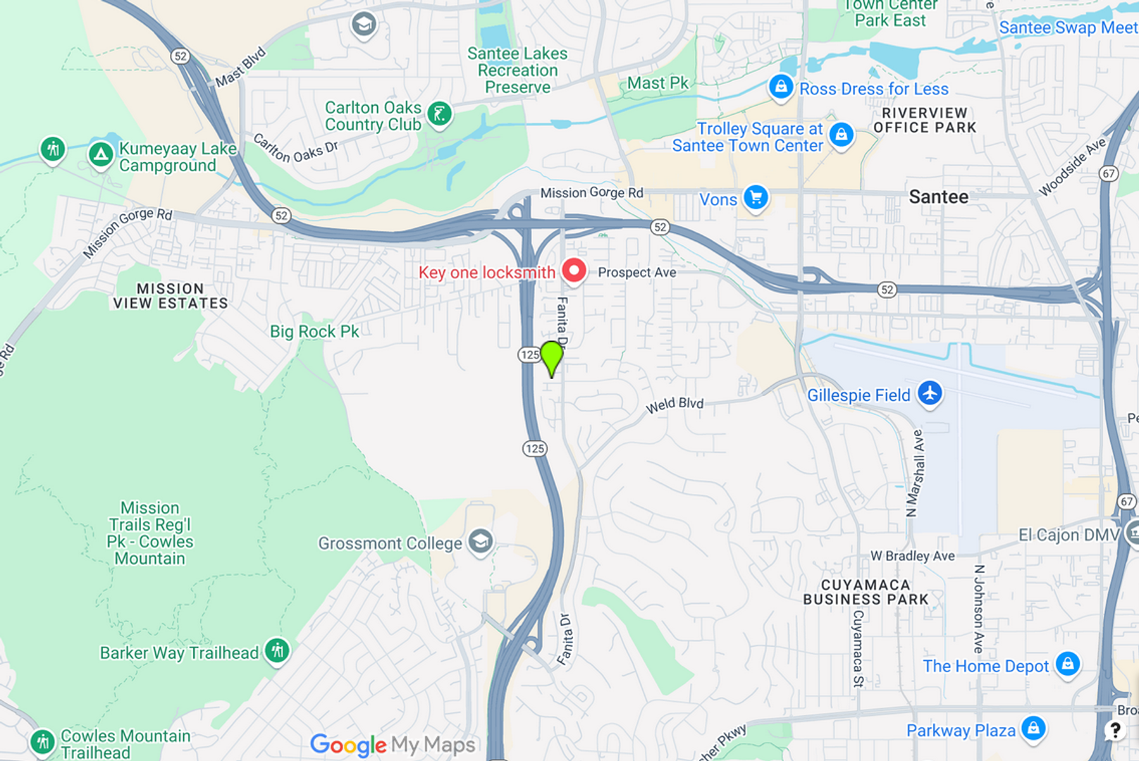 -We are also within close proximity to the 125, 52, 67 and 8 Freeways
